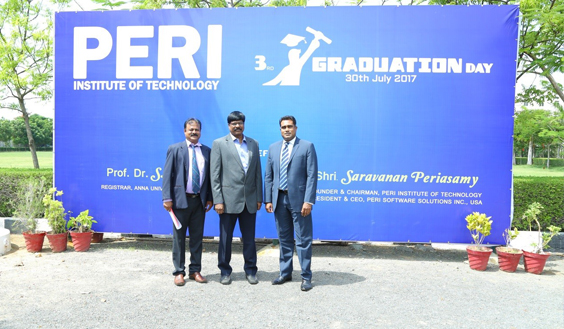 PERI Institute of Technology has organized Third Graduation Day on 30th July 2017, to rejoice and felicitate the persistence and perseverance of graduates across all streams of Engineering, The ceremony witnessed a huge gathering of graduates along with their parents and guardians to witness the proud moment of graduation for their wards. The graduation day was rightly addressed as ticket to change the world.