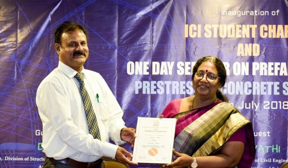 Dr. K. P. Jaya briefed the importance of ICI student chapter and introduced the career scope available for Civil Engineers in Indian Concrete Institute.