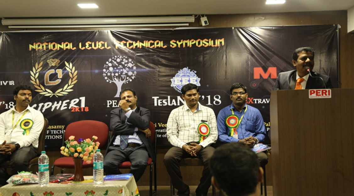 Dr.Palson Kennedy, Principal, Peri Institute of Technology welcomed the gathering. He gave a warm welcome to the honorable Chief Guest Dr. Ravi, Professor, Department of Electrical Engineering, Vellore Institute of Technology, Chennai, Heads of various Departments, coordinators of the event, Faculties and all the students.