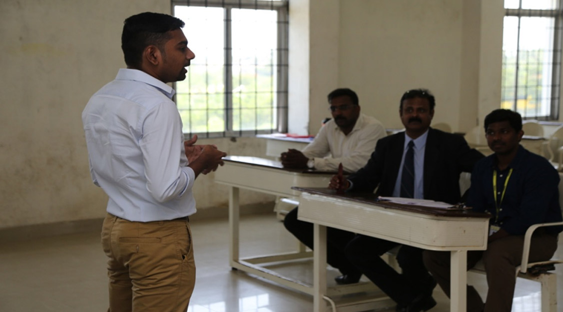 The student of KCG college of Technology, presenting his paper to the panel members.