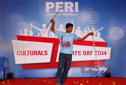 Chennai, July 12 - PERI Institute of Technology (PERI IT) conducted its Sports/ Cultural Day on 12th July 2014. The cultural events started at 10.00 am with the traditional தமிழ்த்தாய் வாழ்த்து (Tamilthai vaazthu). This was followed by a welcome address by students. The Culturals was graced by Mr. Amudhavanan, Vijay TV, who acted as the chief guest and also gave a scintillating performance.