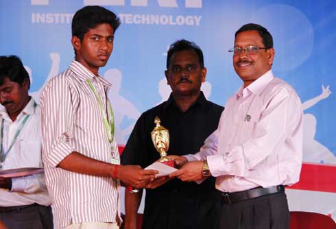 The Sports Day event started at 3.30 pm with a welcome address by students. Dr.R.Ramakrishnan,COE, Tamilnadu Physical Education & Sports University, Chennai honoured us by acting as the chief guest and enlightening us with his educative speech. Dr. Ramakrishnan, along with our Principal, Dr. Sendilvelan, distributed prizes to the winners of the sports events.