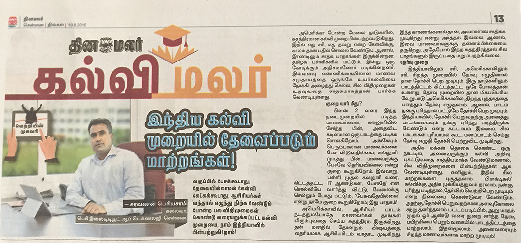 - தி தினமலர் - கல்வி மலர் (Dinamalar - Education Flower) News Paper has published.