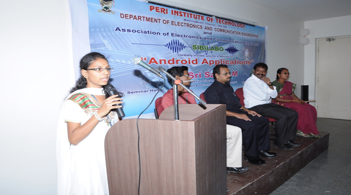 To expose the recent trends in Information and Communication Engineering, the department of ECE organized a Guest Lecture on “ANDROID APPLICATIONS” on 20th August, 2014. Mr.M. Sri Satish, M.S. Senior Program ManagerSMAAT Apps & Technologies Pvt. Ltd, Chennai.