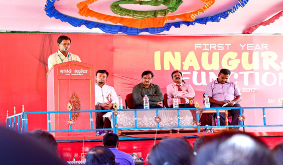 After lightning kuthuvilaku. Dr.R.Palson Kennedy, Principal welcomed the chief guests. Chairman, COO, parents and the new students. In his welcome address how a son/ a daughter has to be attached with their parents as well as obedient to their teachers. The principal advised the student to take much efforts to come up in their life. Each and every step of their efforts will pave the way in their life. Principal has quoted many points from “THIRUKKURAL”. his speech was very wonderful.