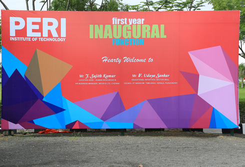 Chennai, August 10 - PERI Institute of Technology (PERI IT) conducted inauguration day for 1st year students. The inauguration function started at 11.00AM in the presence of chief guests, Head of the departments, faculties and grad students. Our principal Dr.R. Palson Kennedy headed the event and welcomed the gathering with his inspirational speech.