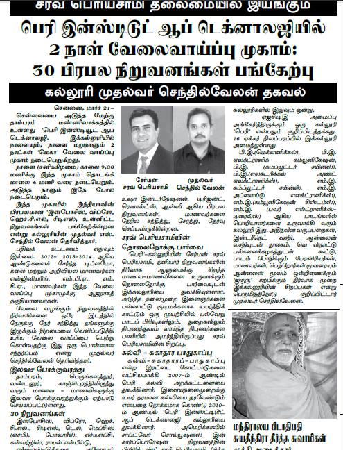 - Tamil Newspaper மக்கள் குரல் (Makkal Kural) has published an article on the PERI Job Fair 2014
