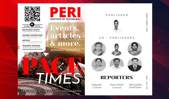 PERI IT Department of Civil Association initiates a newsletter to offer collective ideas and current updates. In their attempts to publish PACETIMES – Newsletter – issue 4 for the teachers, members and HoD of the Civil department. Our COO Mr. Sasikumar Veerarajan, and the CEO Dr. Palson Kennedy, HoD – Civil Mr. Magesh, and staff and students, sent a copy of the newsletter.