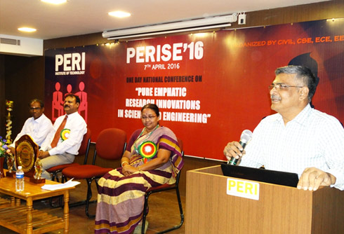Chennai, April 4 - PERISE 2016, a one-day national conference on Pure Emphatic Research in Science & Engineering jointly organized by all the Engineering departments of PERI Institute of Technology was conducted on 7th April 2016.