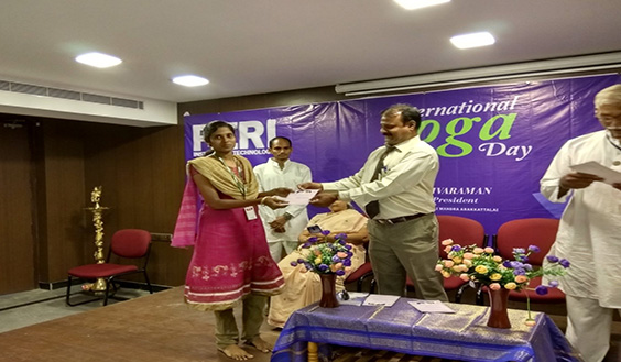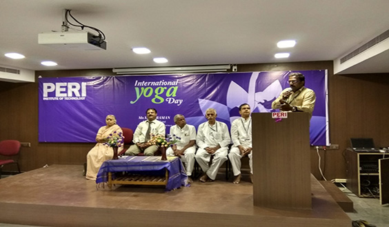 As a part of INTERNATIONAL YOGA Day Celebrations-2017; Peri institute of Technology, Tamil Nadu organized one day Yoga program on KAYAKALAPA Course session in the college premises on 16th June-2017. to 21.6.17. On the request of the Dr. Palson Kennedy, principal of the college, Mr.V.Sivaraman, vice president of Manavalakkalai Mandra Arakkattalai along with his Team conducts the course. Mr. Nakkeran Asst prof, Speaker briefly explain about the benefit of yoga for life in a scientific manner. After the deep discussion, practical session was conducted separately for Genes & ladies . On that session our staff members participate vibrantly along with our principal and get practical knowledge about Kayakalapa Yoga. Later the session Certificates were distributed for the faculty members who have been participated. Vote of Thanks is given by Mr. Mahesh, Head of Civil Department; he expresses his observation about the program in a crispy manner. The program was found to be successful and improve the stress management level of staff members through Yoga.