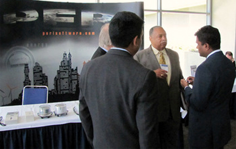 Maryland Commissioner Harold D. Williams talks to Sarav Periasamy and PERI Software staff at NARUC conference on smart grid tech.